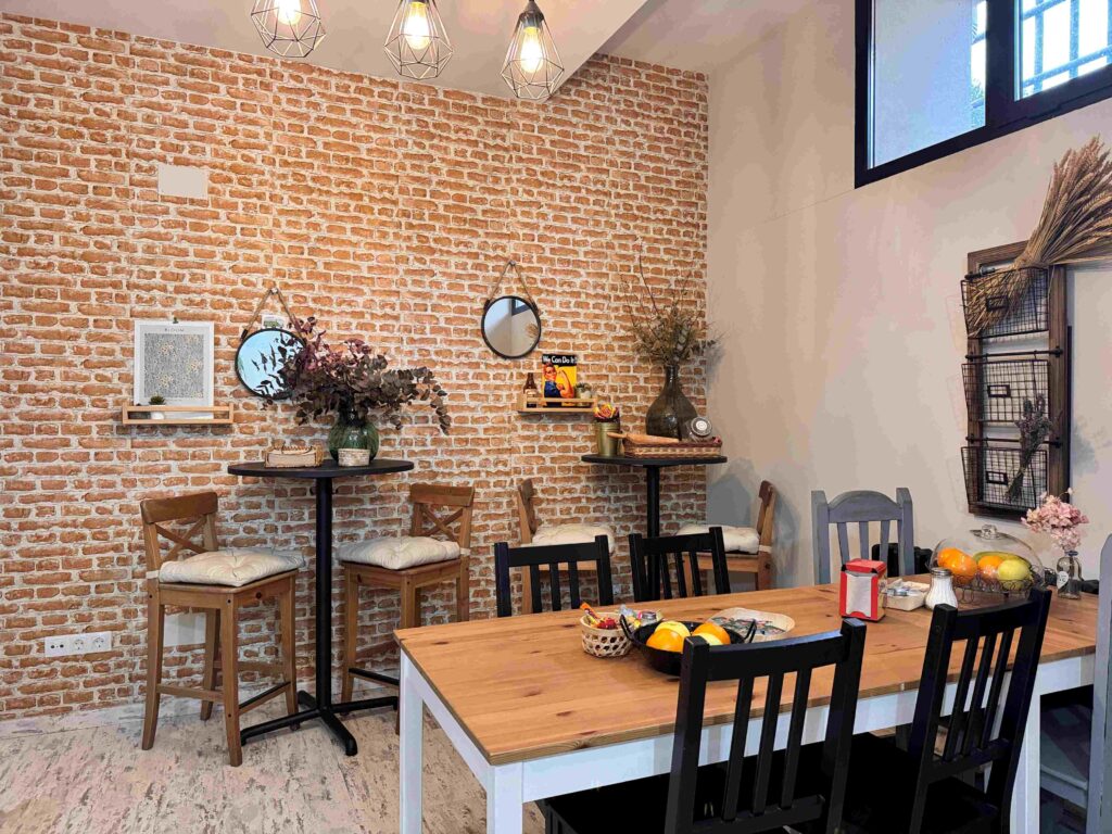 También os ofrecemos un delicioso desayuno en nuestro precioso comedor, con pan del bueno, PAN, PAN, zumo de naranja recién exprimido y café o té.